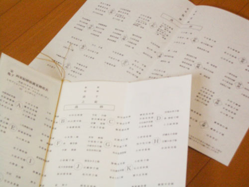 厚手の紙のおもてに表紙を印刷。中紙の片面に席次表を印刷。裏面は空白。