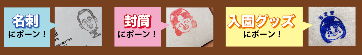名刺、封筒、手紙。お子様の入園グッズにも活用できる「似顔絵スタンプ(はんこ)」。