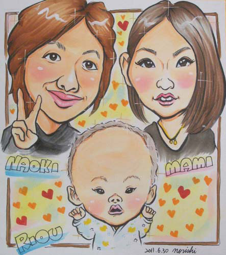 こども病院で似顔絵ボランティアを始める前年の2009年は、我が家に第一子が誕生した年でした。多少難産だったこともあり、生後すくすくと元気に育っていく我が子を見ては、時々出産当時を思い出し「本当によかったな」と胸をなで下ろすことがありました。ちょうどその年の12月、僕は初めて出張似顔絵の仕事をしました。緊張しながらの初仕事でしたが、その時に描かせていただいた子どもたちが、みんな目をキラキラ輝かせ、僕の描いた似顔絵をとても喜んでくれたのです。そんな子どもたちの様子に僕自身もすごく感激しました。その感激は家に帰ってからも抜けず、もっとたくさんの子どもたちを描きたいな、と思いました。そんな時、仕事で知り合った豊科にある「高木整体」の高木先生が、こども病院でお見舞客の方対象にボランティアのソフト整体をおこなっているという話を聞いたのです。「自分も何かしたい!」と感じ、前述のこともあって“こども病院での似顔絵ボランティア”を思いついたのです。