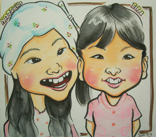 高木先生のお口添えもあって、こども病院で似顔絵を描くことはすんなり決まりました。「あの時出張似顔絵で描いた子どもたちみたいに、僕の似顔絵で病に伏している子どもたちを少しでも元気にしたい」。おこがましいのは重々承知の上ですが、そんな風に考え、僕はこども病院に行くようになりました。そしてそれは現在も定期的におこなっています。ベッドの上で暗い表情をしている子に、仕上がった絵を渡す瞬間はいつもドキドキです。気に入ってくれるかな?と。似顔絵を見てパーッと明るくなった表情が見れると、もう最高!嬉しいのはもちろん、パワーを与えるつもりで来ていた僕が、逆に子どもたちからパワーをもらった気分になります。